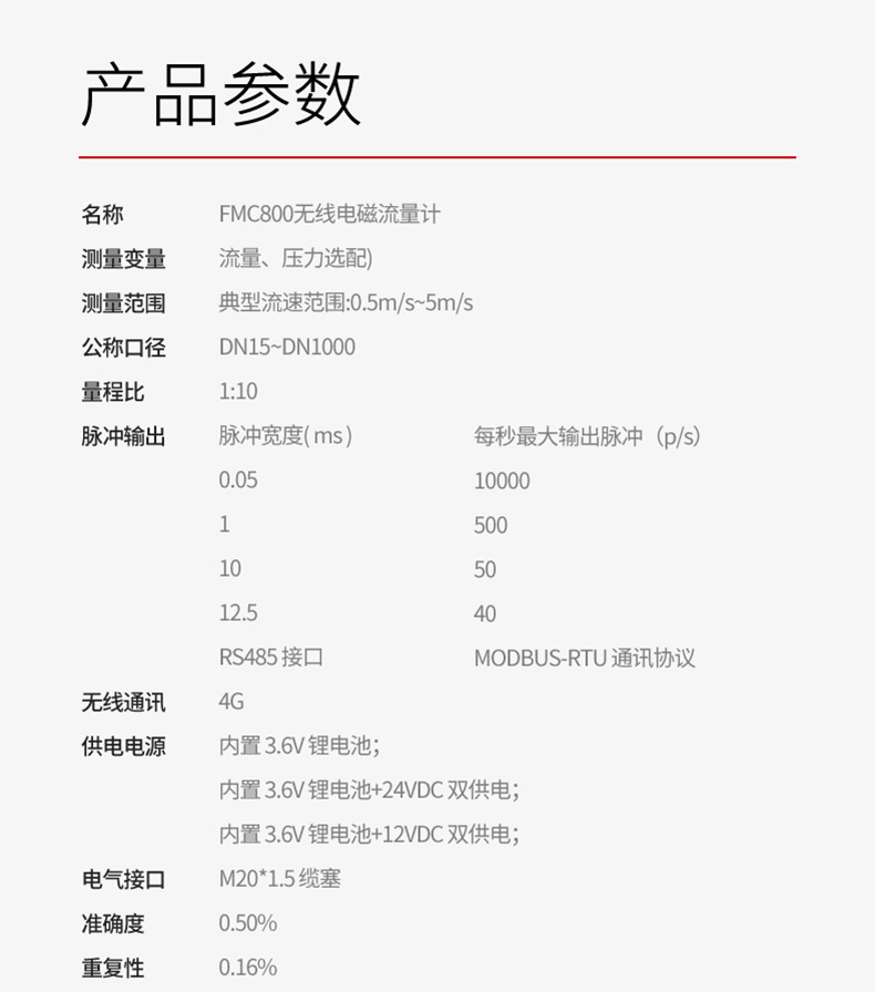 金莎9001zz以诚为本_FMC800无线电磁流量计由电磁流量计和 4G 无线远传模块共同组成,用于测量封闭管道内导电液体的瞬时流量和累积流量。测量数据通过 4G 信号远传至网络接收平台,用户可以通过浏览器、微信公众号等方式灵活方便地查看数据、远程配置参数等功能,实现智能物联。广泛应用于自来水、化工、煤炭、环保、轻纺、冶金、造纸等行业。 流量转换器为电池供电型转换器,标配一个常规锂电池组,可持续工作 3~6 年。若配用高容量锂电池组,工作时间会更长。