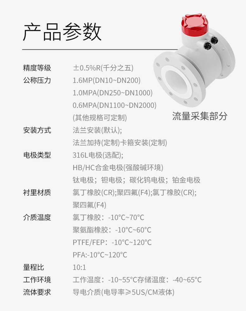 LDG-MIK分体式电磁流量计,分体式电磁流量计的优点是压损极小,可测流量范围大。泛应用于石油化工、自来水、给水排水、水利灌溉、水处理、污水处理站(环保污水控制、化工污水、电镀污水)、造纸(纸浆)、泥浆、医药、食品等工农业的生产公司过程流量测量和控制。