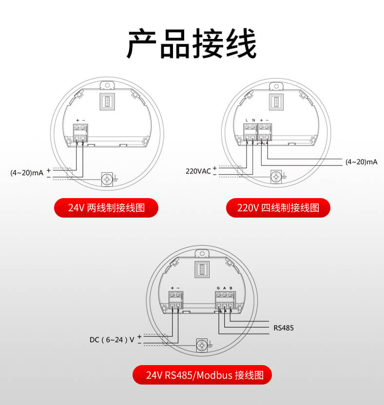 26GHz信号输出:4...20mA/HART(两线/四线) RS485/Mod bus